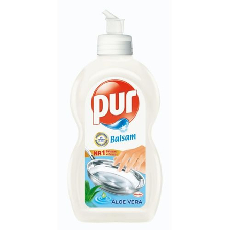 Pur Balsam z dodatkiem aloesu jest delikatny dla dłoni i nie wysusza ich podczas zmywania