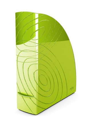 pojemnik na czasopisma, wykonany z odpornego na pęknięcia i odkształcenia polistyrenu w 100% recyklowanego