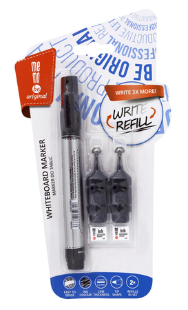 Marker do tablic suchościeralnych MEMOBE + 2 ampułki z zapasowym tuszem, okrągła końcówka, kolor czarny