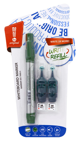 Marker do tablic suchościeralnych MEMOBE + 2 ampułki z zapasowym tuszem, okrągła końcówka, kolor zielony