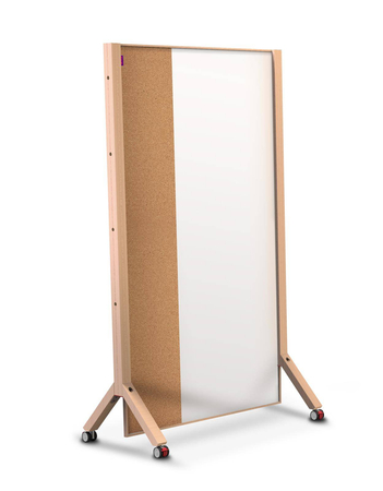 Kolekcja WOOD emanuje prostotą i szlachetnością naturalnych materiałów. Ramy są wykonane z naturalnej olchy pokrytej warstwą bezbarwnego, ekologicznego wosku olejnego. Wertykalny podział obszaru roboczego został zaprojektowany z myślą o funkcjonalności dla osób z niepełnosprawnością. Pięć typów tablic z różnorodnymi powierzchniami można łączyć w zestawy, tworzące spójną, estetyczną całość. Akcesoria dołączane do tablic zapewniają zachowanie porządku. Dbamy o to, aby wszystkie wykorzystywane przez nas materiały pochodziły z naturalnych, odpowiedzialnych społecznie źródeł i łatwopoddawały się recyklingowi. Dotyczy to zarówno samych produktów, jak i ich opakowań. Kolekcja posiada Certyfikat Zgodności, który potwierdza, że wyrób spełnia wymagania normy PN-EN 14434:2010 - jest bezpieczny podczas jego montażu i użytkowania. Tablica mobilna typu parawan suchościeralna magnetyczna i korkowa- powierzchnia w 2/3 z wysokiej jakości stali lakierowanej na biało, w 1/3 z korka naturalnego odpornego na wielokrotne wbijanie pinezek- biała część tablicy przeznaczona do pisania dedykowanymi markerami do tablic suchościeralnych, korkowa do zawieszania kartek / notatek / rysunków za pomocą pinezek- właściwości magnetyczne części suchościeralnej pozwalają na zawieszanie grafik i kartek za pomocą magnesów- rama z drewna olchowego - kółka z blokadą start-stop umożliwiają pełną mobilność- łatwy montaż - potrzebujesz tylko śrubokrętu, wszystkie pozostałe elementy w zestawie- w każdym opakowaniu 6 magnesów i 6 pinezek z drewna bukowego w czerwonym i naturalnym kolorze (4 x ?15 mm, 4 x ?25 mm, 4x ?35)- wymiary: 100 x 174,5 x H180 cm